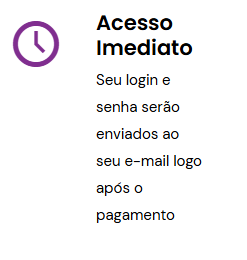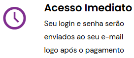 Seu login e senha serão enviados ao seu e-mail logo após o pagamento